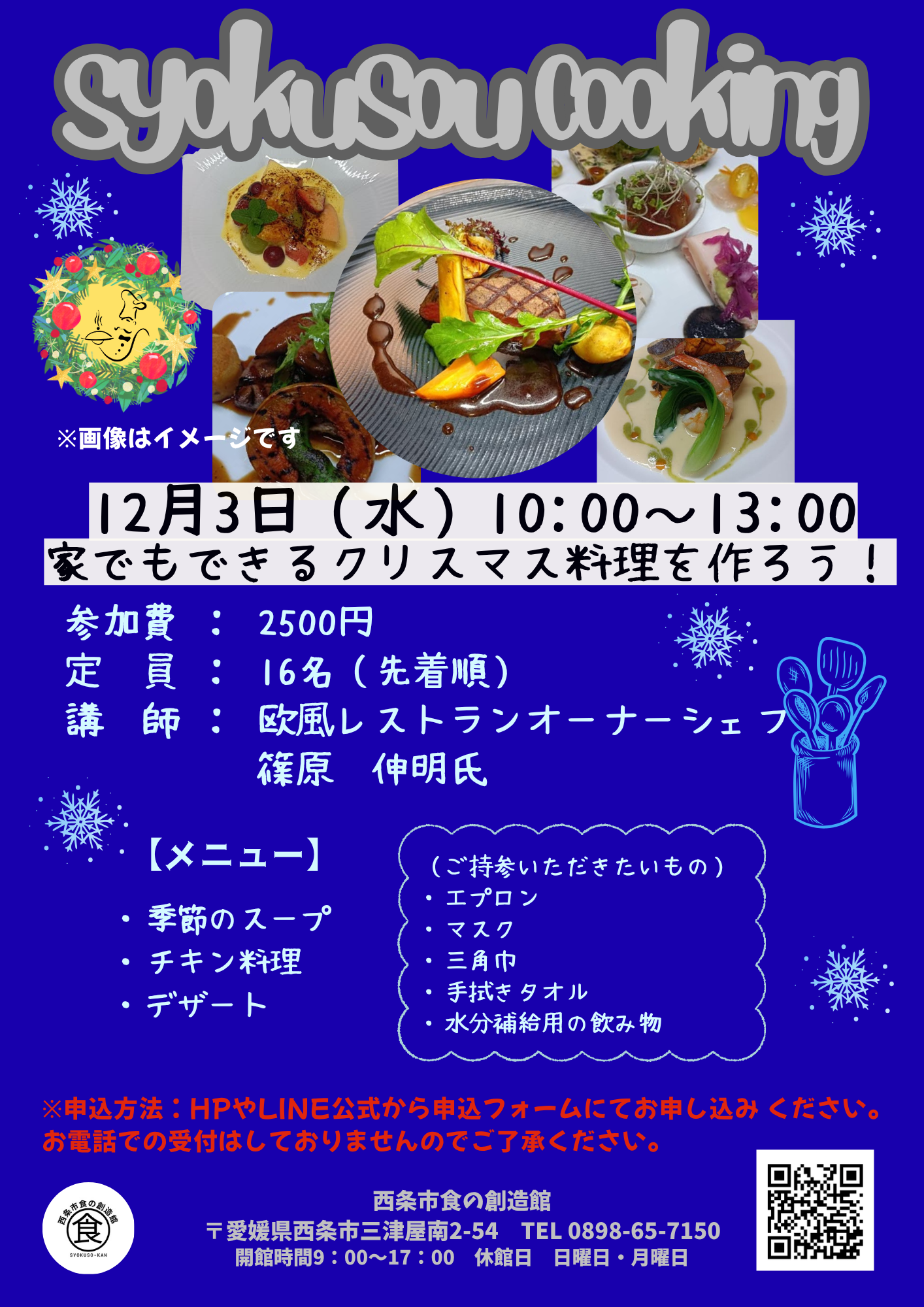 12/3(水)開催★家でもできるクリスマス料理を作ろう!【食創館の料理教室】